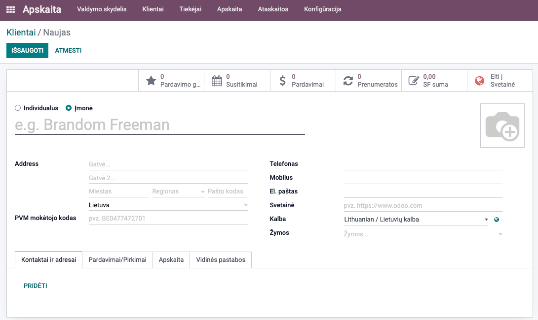 Apskaitos programoje suvedu klientą Klientai→Klientai→Sukurti