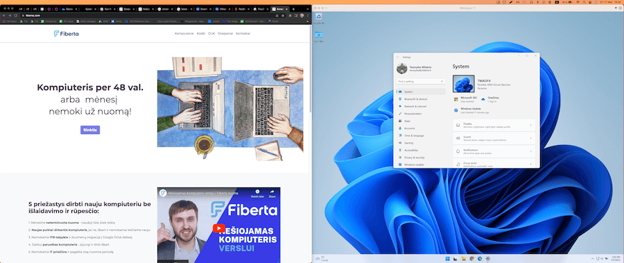 Įdomu yra tai, kad Parallels su Windows 11 Macbook kompiuteryje veikia itin sklandžiai ir net nejaučiu skirtumo, kai Win yra įjungti. Mažos smulkmenos, kurios optimizuoja sklandų kompiuterio darbą. Pavyzdžiui, jei Windows nenaudojami, automatiškai įjungiamas pauzės rėžimas.